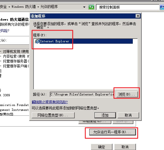 配置Windows Server版本的防火墙功能方法,参考如下步骤。本文以Windows Server 2008系统版本为例。 远程连接Windows轻量应用服务器。具体操作,请参见远程连接Windows服务器。 单击开始 > 控制面板 > 系统和安全 > Windows 防火墙。 单击允许程序或功能通过 Windows 防火墙。 单击允许运行另一组程序。 在添加程序页面,程序(P)标签下,双击指定应用程序即可。如果在该标签下没有查看到指定的应用程序,可以单击浏览,在文件系统中查找到指定应用程序文件,双击该文件即可。 远程连接Windows轻量应用服务器。具体操作,请参见远程连接Windows服务器。 单击开始 > 控制面板 > 系统和安全 > Windows 防火墙。 单击高级设置。 单击入站规则 > 新建规则。 单击规则类型,页面右侧选择端口。 单击下一步,页面右侧选择端口类型TCP或UDP,选择特定本地端口(S),输入要允许或禁止的本地端口号,比如“8080”。 单击下一步,选择阻止连接或允许连接。 说明 如果端口入站规则缺省规则是允许,那么选择阻止连接表示关闭该端口。 如果端口入站规则缺省规则是阻止,那么选择允许连接表示开启该端口。 单击下一步,选择合适的作用域,输入规则名称后单击完成。 说明 域为根据本机的网络环境判断,默认全选。 远程连接Windows轻量应用服务器。具体操作,请参见远程连接Windows服务器。 单击开始 > 控制面板 > 系统和安全 > Windows 防火墙。 单击高级设置。 单击入站规则 > 新建规则。 单击自定义(C) > 下一步。 选择所有程序(A)或此程序路径(T),单击下一步。 说明 所有程序指本机中所有程序,此程序路径指特定的单个程序,现场操作请根据需要选择所有程序或此程序路径。 接受默认设置,单击下一步。 在此规则应用于哪些远程IP地址?下选择下列IP地址,单击添加。 输入需要过滤的IP,单击确定,再单击下一步。 选择阻止连接或允许连接。 单击下一步,选择合适的作用域,输入规则名称后单击完成。 远程连接Windows轻量应用服务器。具体操作,请参见远程连接Windows服务器。 单击开始 > 控制面板 > 系统和安全 > Windows 防火墙。 单击高级设置。 单击添加,选择此IP地址或子网(A) ,输入需要过滤的IP,单击确定。 单击入站规则,查找开启的本地端口,右键单击指定的端口,单击属性,单击属性分页作用域。选择远程IP地址内的下列IP地址。 远程连接Windows轻量应用服务器。具体操作,请参见远程连接Windows服务器。 单击开始,输入 选择。 在IP 安全策略,在本地计算机上,右键单击创建 IP 安全策略。 单击下一步,根据提示输入合适的名称和描述,依次单击下一步 > 下一步 > 完成。 单击添加(D),根据提示单击下一步。 在指定IP安全规则的隧道终结点,选择此规则不指定隧道(T)后,单击下一步。 在选择网络类型,选择所有网络连接后,单击下一步。 单击添加(A)。 根据提示在IP筛选器列表,输入对应信息,单击添加(A) 创建新IP筛选器。 单击下一步,单击下一步,在源地址(S) 处,选择一个特定的 IP 地址或子网,根据提示在IP地址或子网(I)处,输入对应的IP地址或子网,单击下一步。 在目标地址(D)处,单击选择任何IP地址,单击下一步。 在选择协议类型(S)处,选择任何,单击下一步 > 完成。 在IP筛选器列表(I),选择新建的IP筛选器,单击确定。 在筛选器操作(C),单击下一步,单击添加(A),创建新的筛选器操作。 根据提示单击下一步,输入对应的名称和描述。单击下一步,选择阻止(L)。单击下一步,选择不允许不安全的通讯。单击下一步,选择完整性和加密(E)。单击下一步,根据提示单击完成。 创建筛选器操作成功后,单击选择该新建筛选器操作,单击下一步,根据提示单击完成。单击确定,这样一个阻止指定IP地址(段)访问服务器的策略添加完成。操作步骤