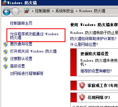 功能一:允许程序或功能通过Windows防火墙