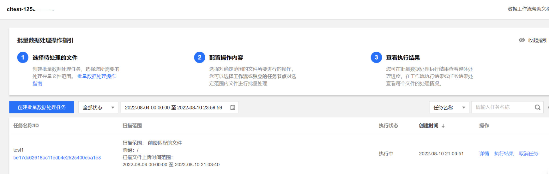 1. 选择一个文件夹,创建批量数据处理任务,可参见 批量数据处理。