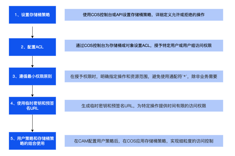 通过下述操作,COS 确保了数据的安全性和灵活性,让您能够根据实际业务需求,为不同的用户和应用场景配置合适的访问权限。