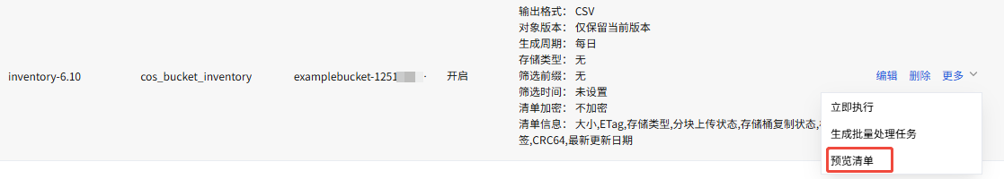2. 经过清单确定被删除的对象之后,保留一份 csv 文件,上传至某个存储桶。
