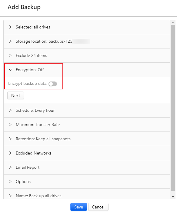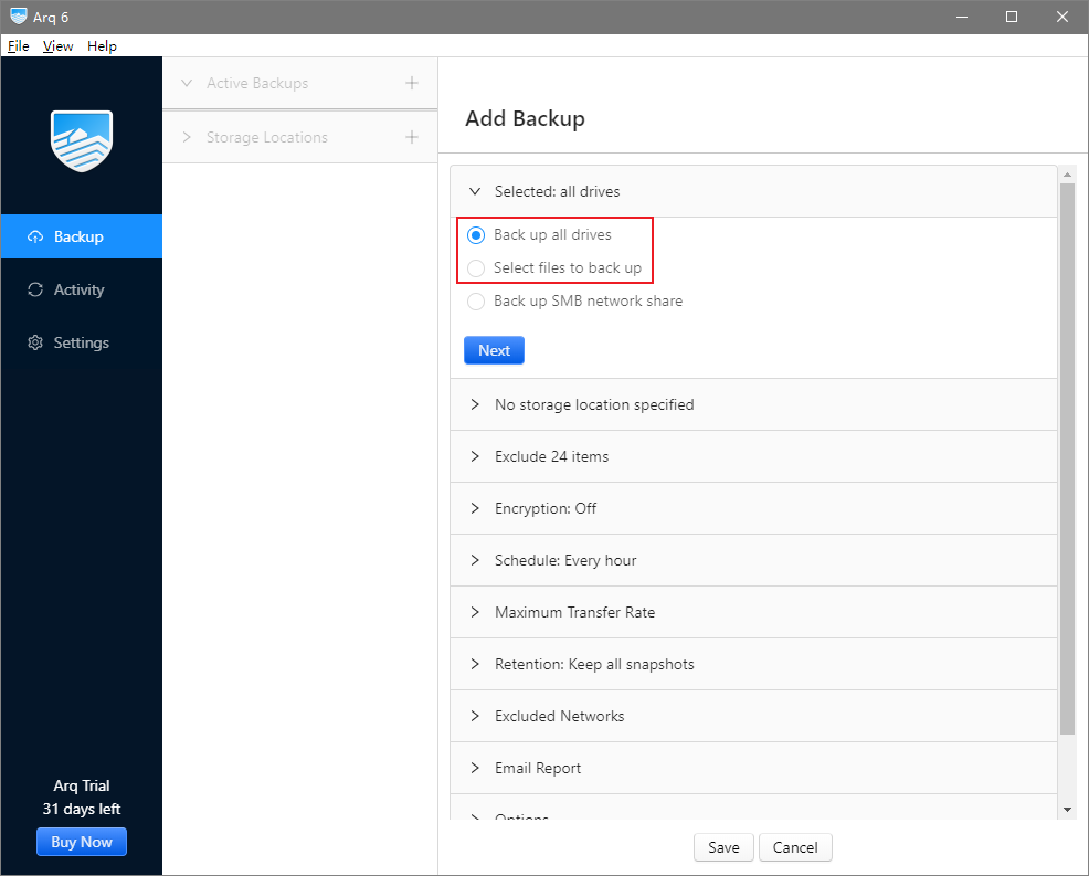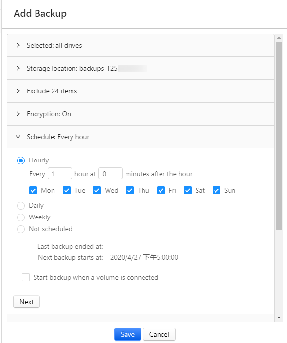 12. 单击 Save 保存设置,然后单击 Back Up Now 开始备份。