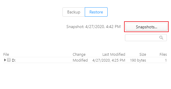 4. 恢复操作默认是从最新的备份中恢复,如果有需要,可以从快照中找到历史版本的备份,并从历史版本的备份中恢复。单击 Snapshots 查看历史快照。