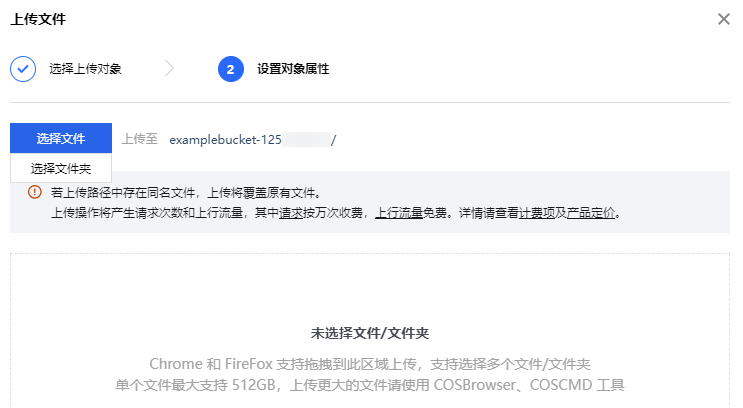 3. 上传文件夹到存储桶。