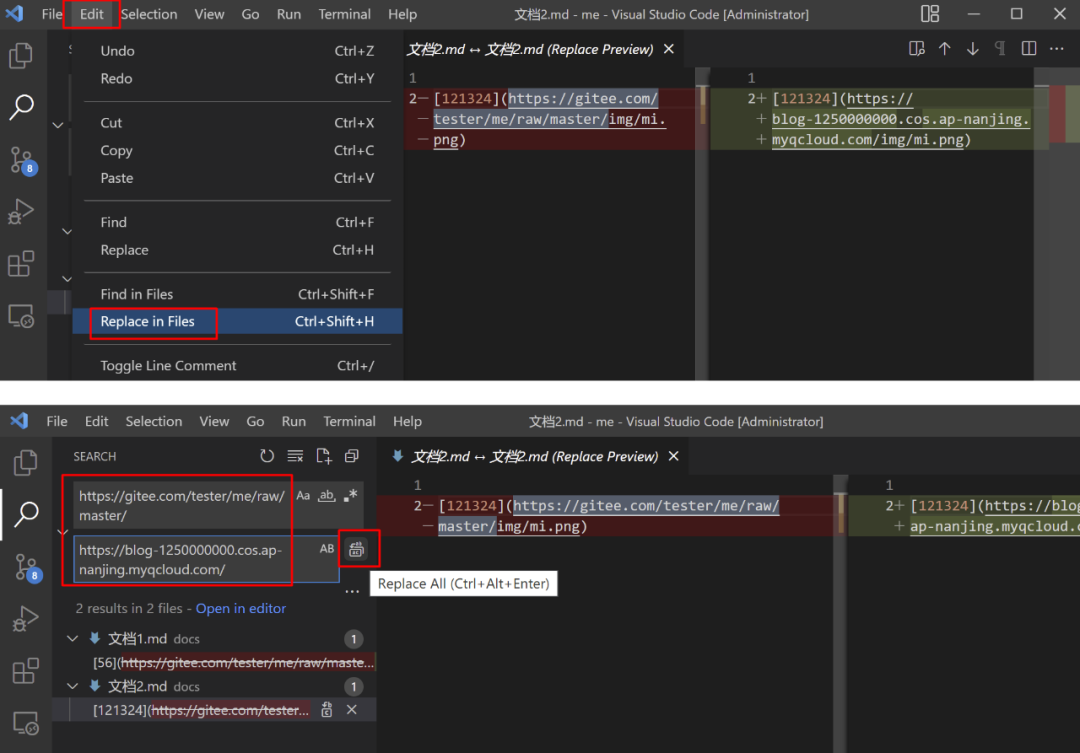 4. 全局替换链接域名