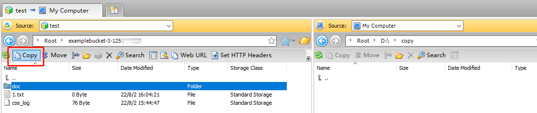 在左侧窗口中选择需下载的对象,然后将对象拖拽到右侧本地计算机的文件夹中,即可完成下载操作。