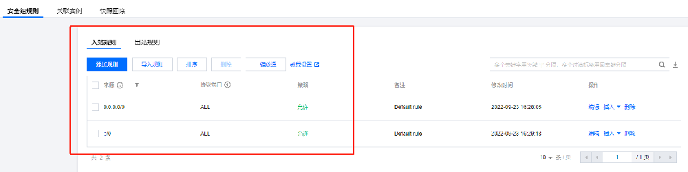 1. 首先准备一台 CVM 机器,然后安全组的入站规则和出站规则按照如下配置: