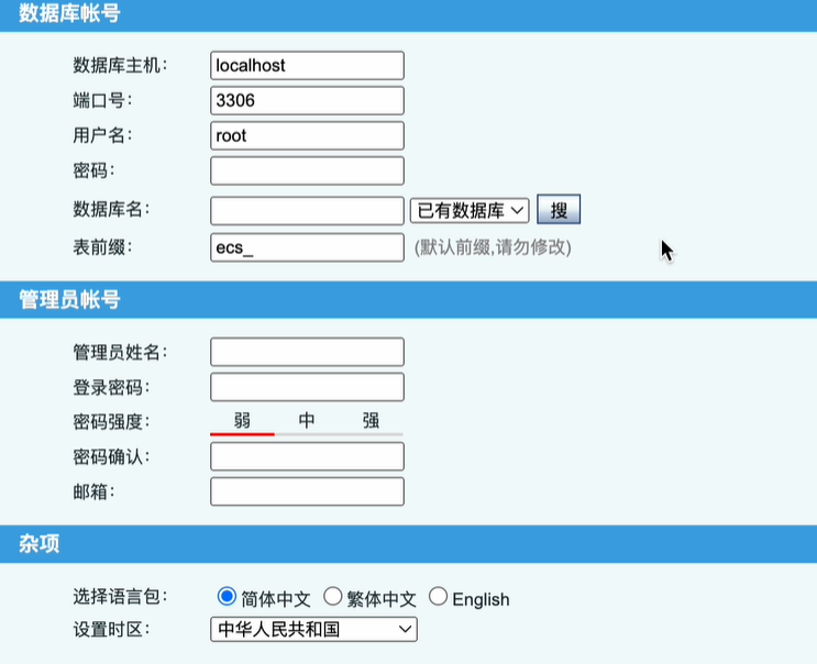 下载 ECShop 商城源码后,您可在 ECShop 平台的帮助中心查看 ECShop 官方安装指南并进行安装,或者通过宝塔面板进行安装。宝塔面板安装指引请参见 宝塔官网。下面以宝塔安装 ECShop V4.1 版本为例。