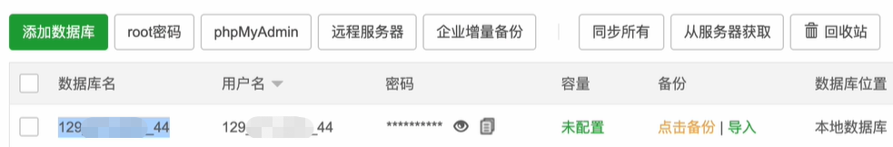 数据库账号可在宝塔界面中获取。