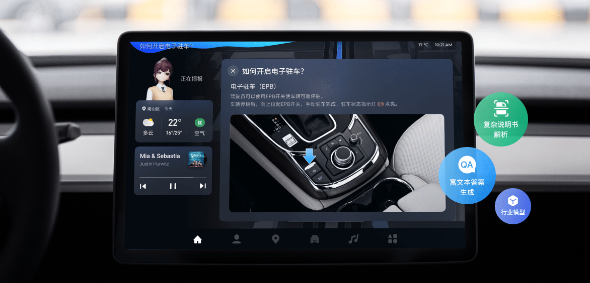 结合车载系统特点,为用户提供个性化的知识问答服务,满足驾驶过程中的信息查询需求,提升驾驶体验。支持图文混排等复杂汽车操作手册、产品说明书的快速解析及检索,结合行业大模型生成拟人化答案,实现更加拟人化、个性化的车内人机交互。