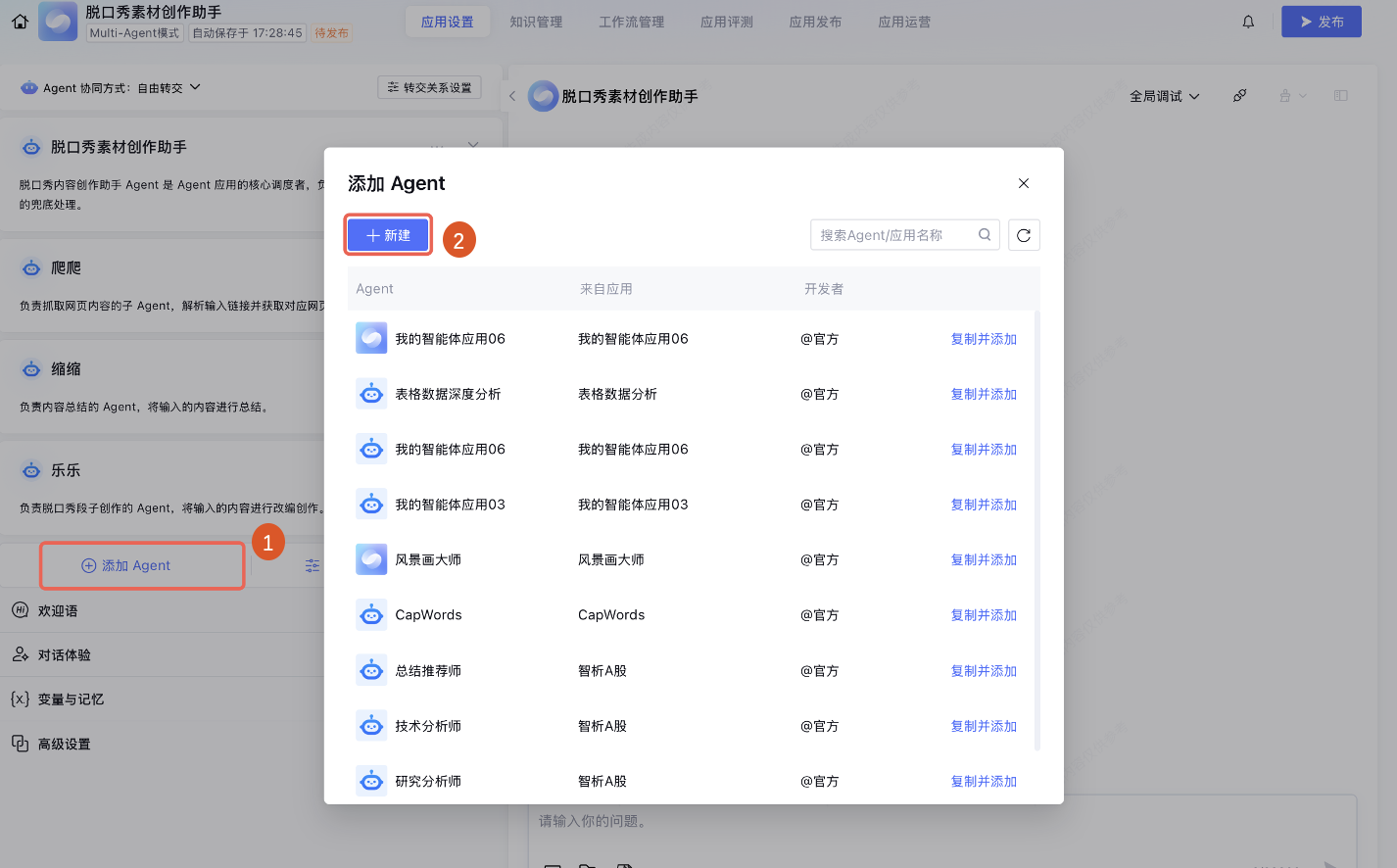 本文以创建“脱口秀素材创作助手”为例,详细介绍如何基于智能体开发平台创建 Multi-Agent 模式应用。