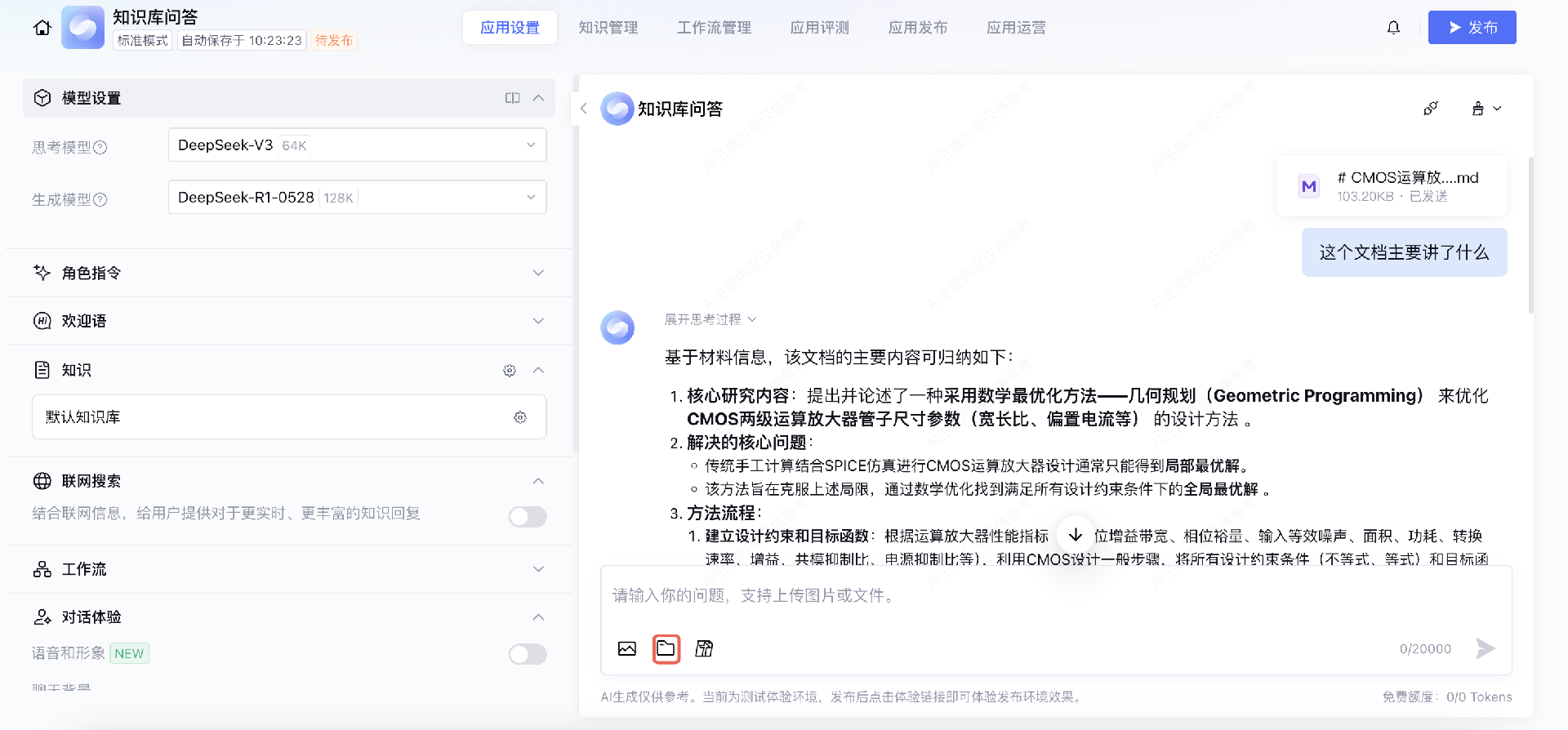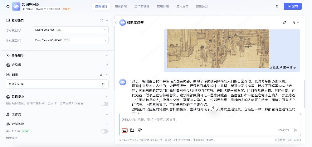 开启语音和形象后,对话窗口支持用户用语音输入进行提问,大模型也可以将答案进行语音播报。