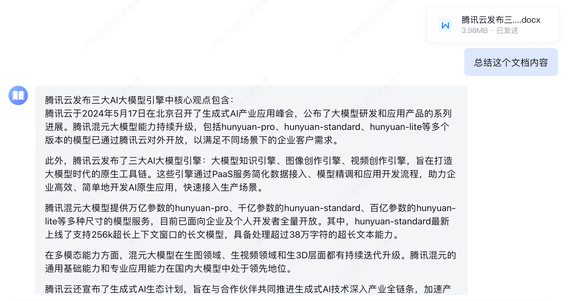 支持通过模型对上传的文件进行总结。