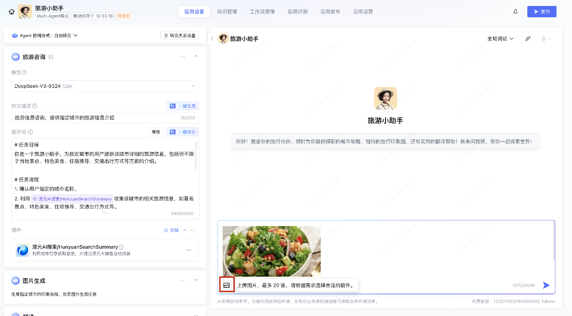 支持上传不代表 Agent 可处理该图片,依赖为Agent配置对应的插件,Agent才能正确处理图片内容。