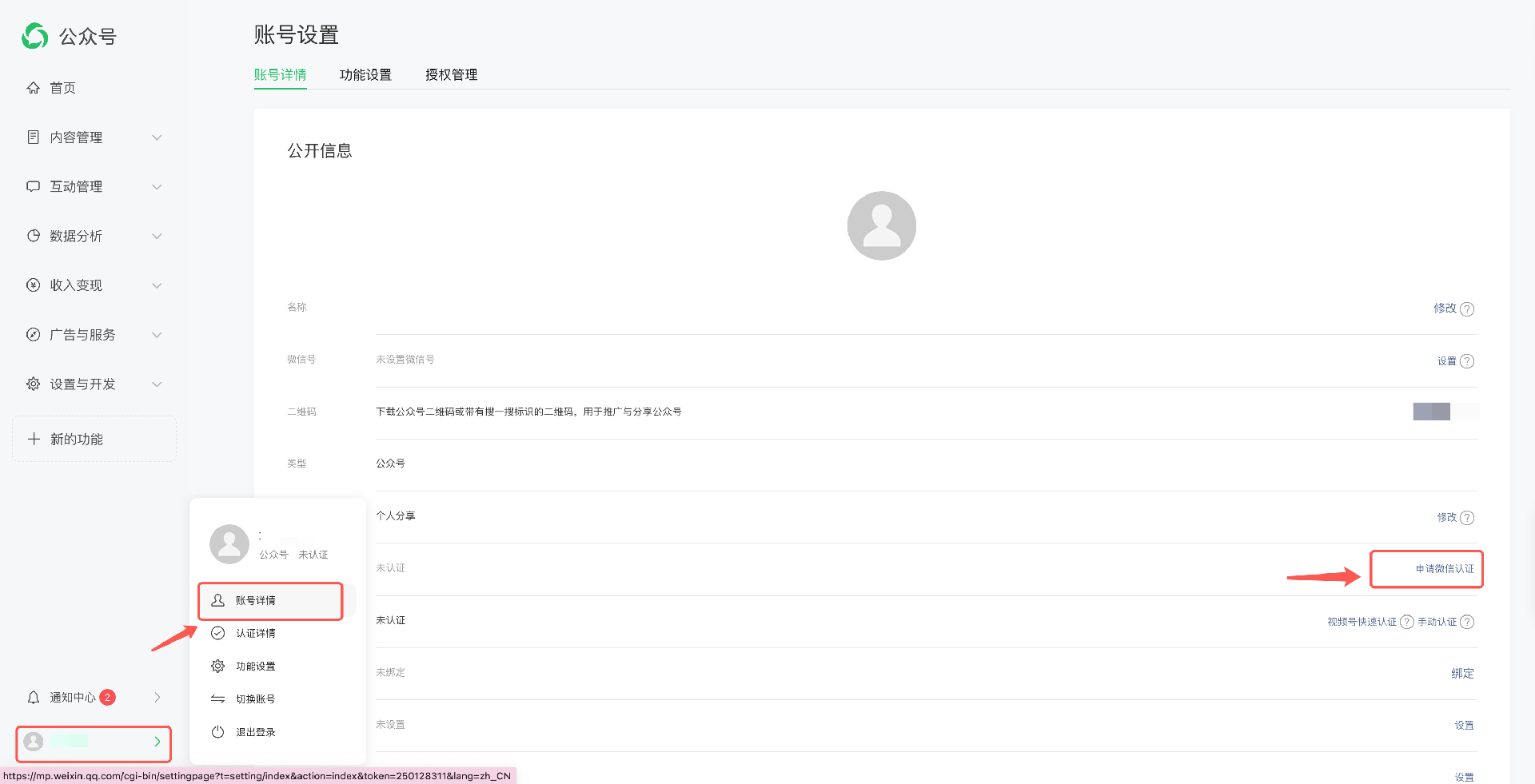 5. 在微信移动端,根据页面提示选择服务号或订阅号并确认授权。