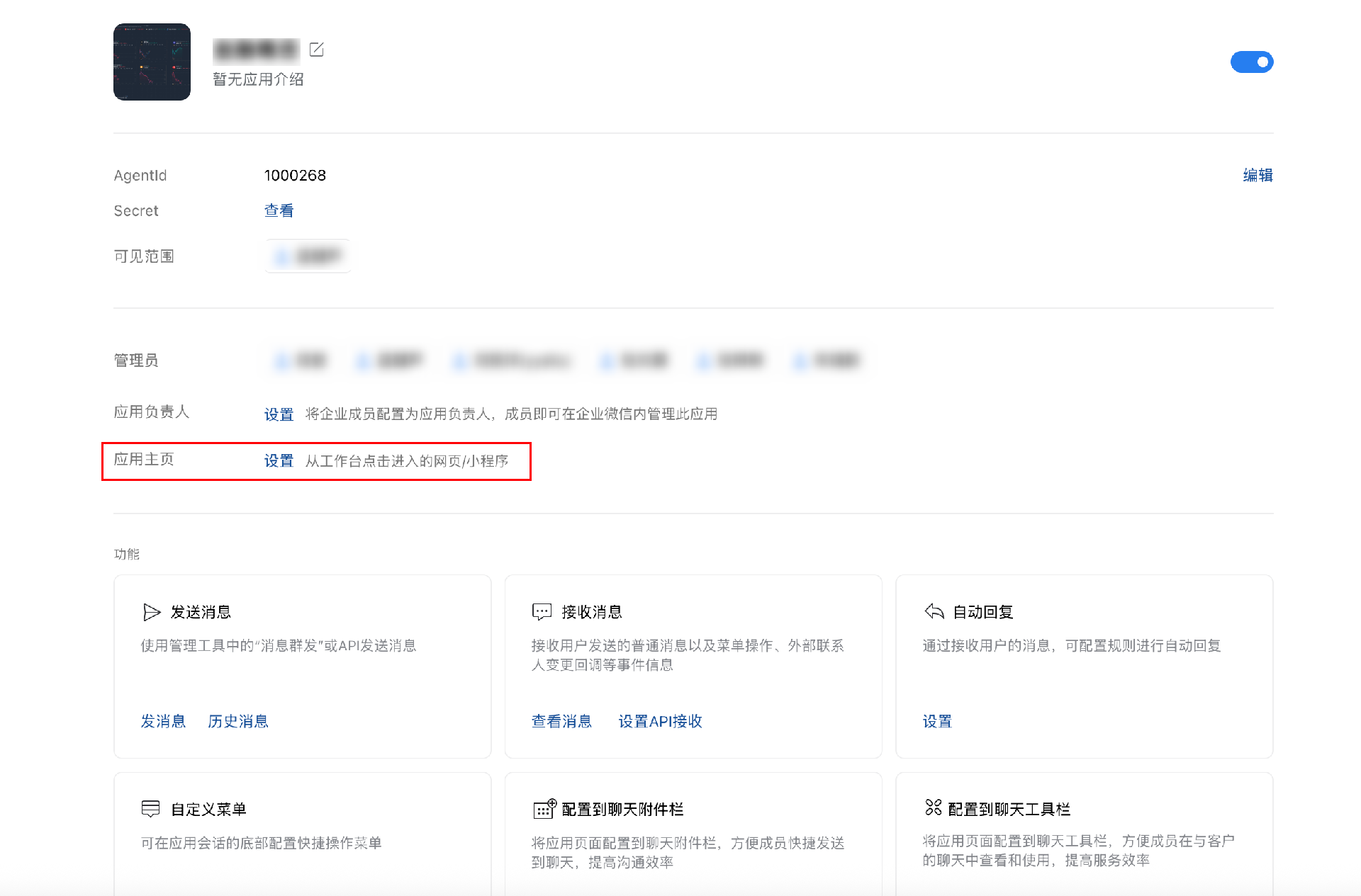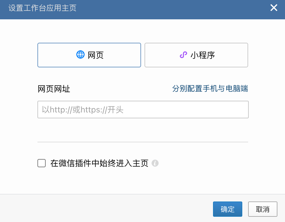 2. 进入企微应用详情 > 应用主页,单击设置后填入该链接即可。