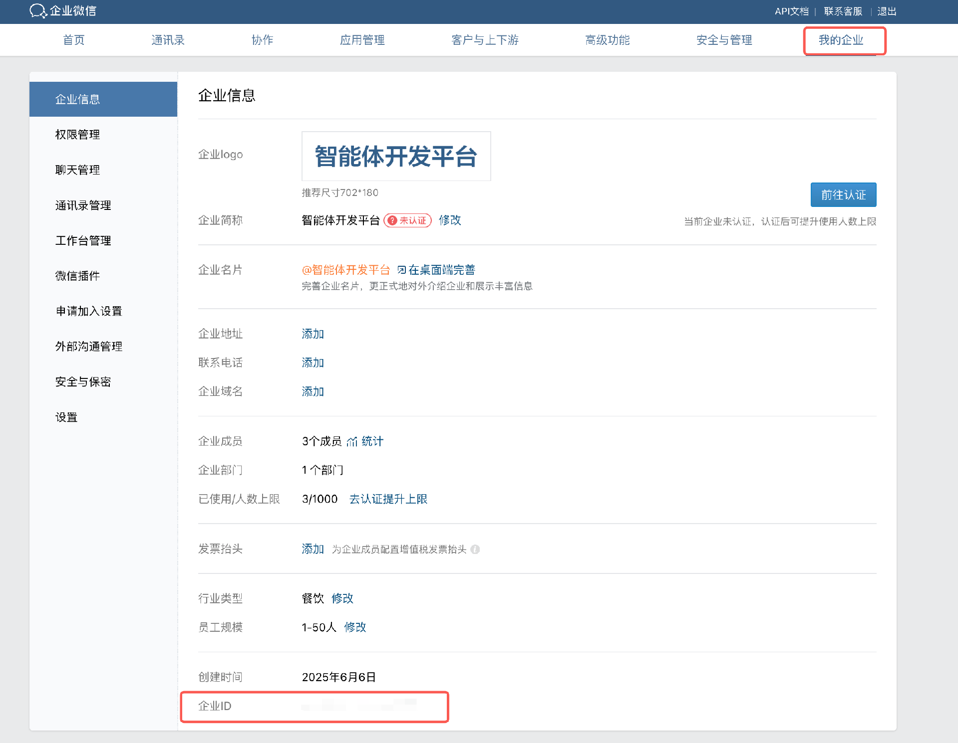 点击我的企业,复制企业ID。