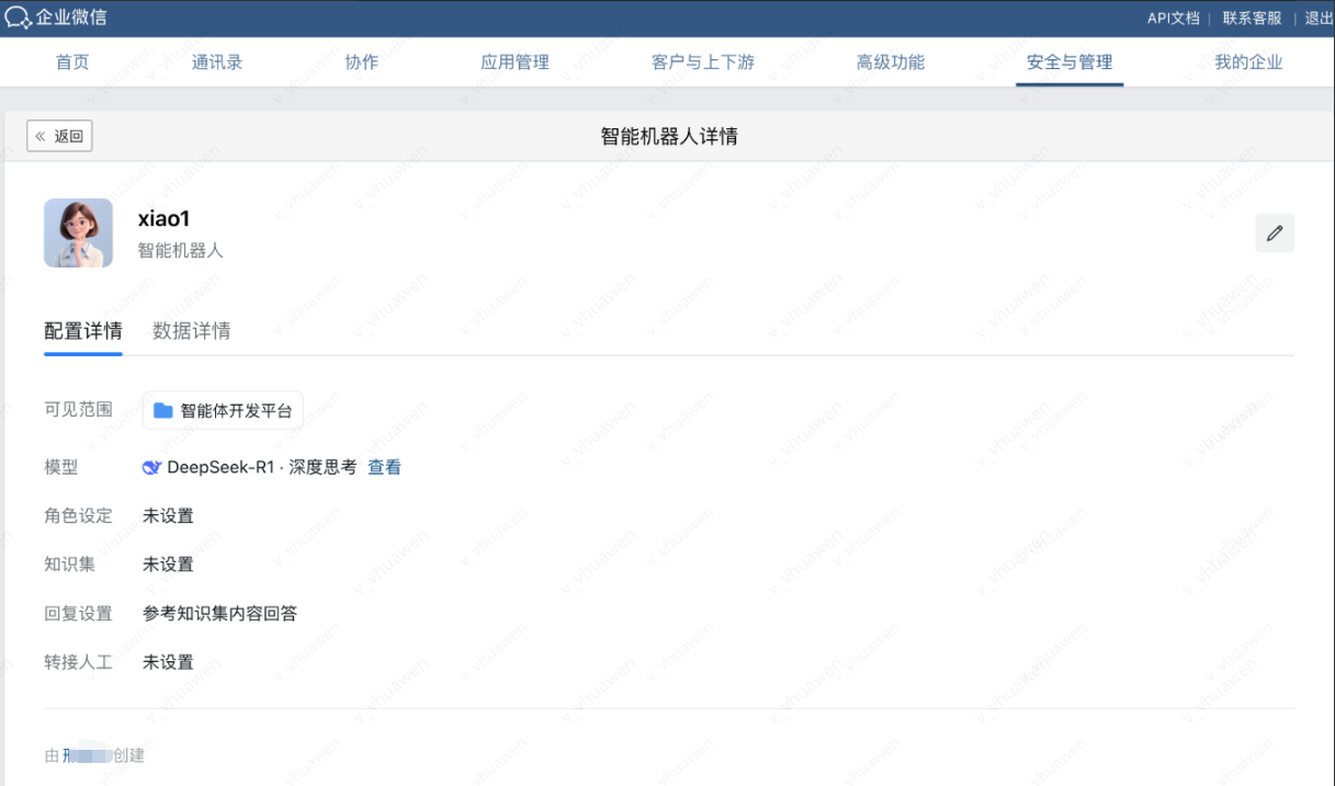 1. 返回安全与管理 > 管理工具 > 智能机器人,进入智能机器人详情页面,点击右上角“小笔”。