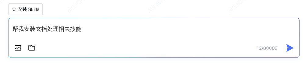 在对话窗口,也通过上传 ZIP 格式的 Skill 配置文件完成安装,如下图所示: