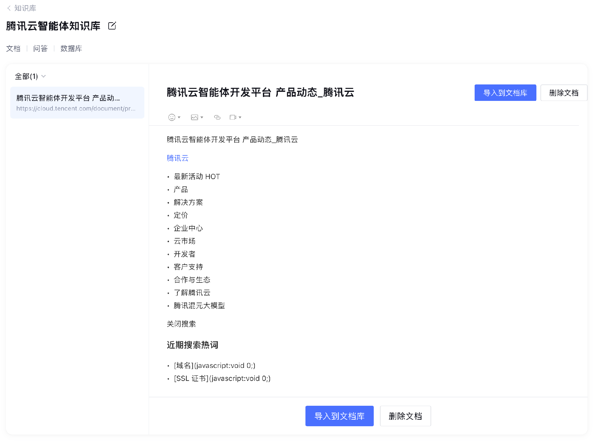 文档下载:从腾讯云智能体开发平台中下载已导入文档到本地。