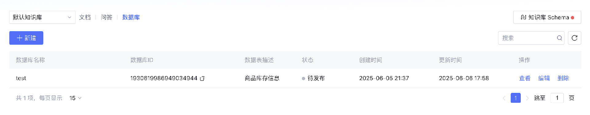 在数据库列表页,您可进行查看、编辑、删除数据库。