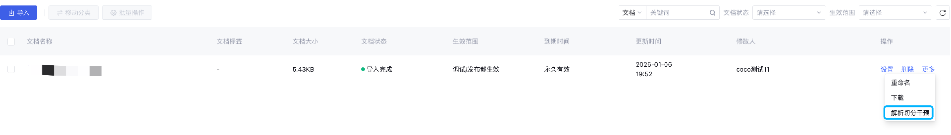 知识库文档上传的“网页文件”上传功能、知识库文件的“解析切分干预”功能均依赖您知识库设定的文档解析模型支持对 Markdown 格式文件的处理。如您随意更换为不支持处理 Markdown 格式文件的文档解析服务,“网页文件”上传功能、知识库文件的“解析切分干预”功能将失效。请谨慎操作。