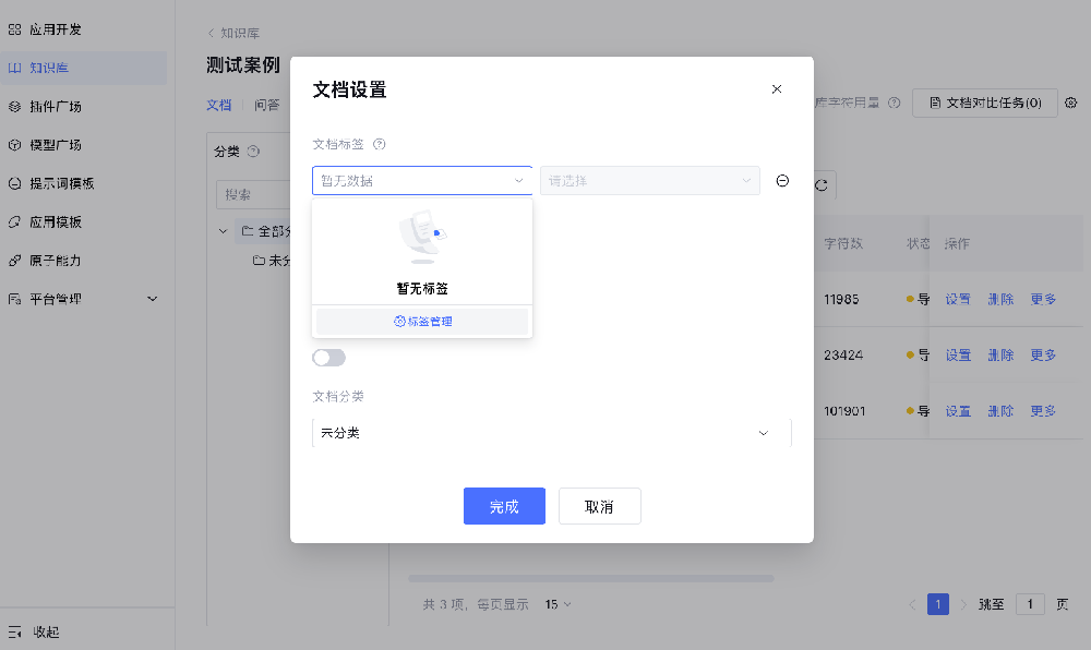 1. 单个知识库下的标签管理,最多可创建100个标签。