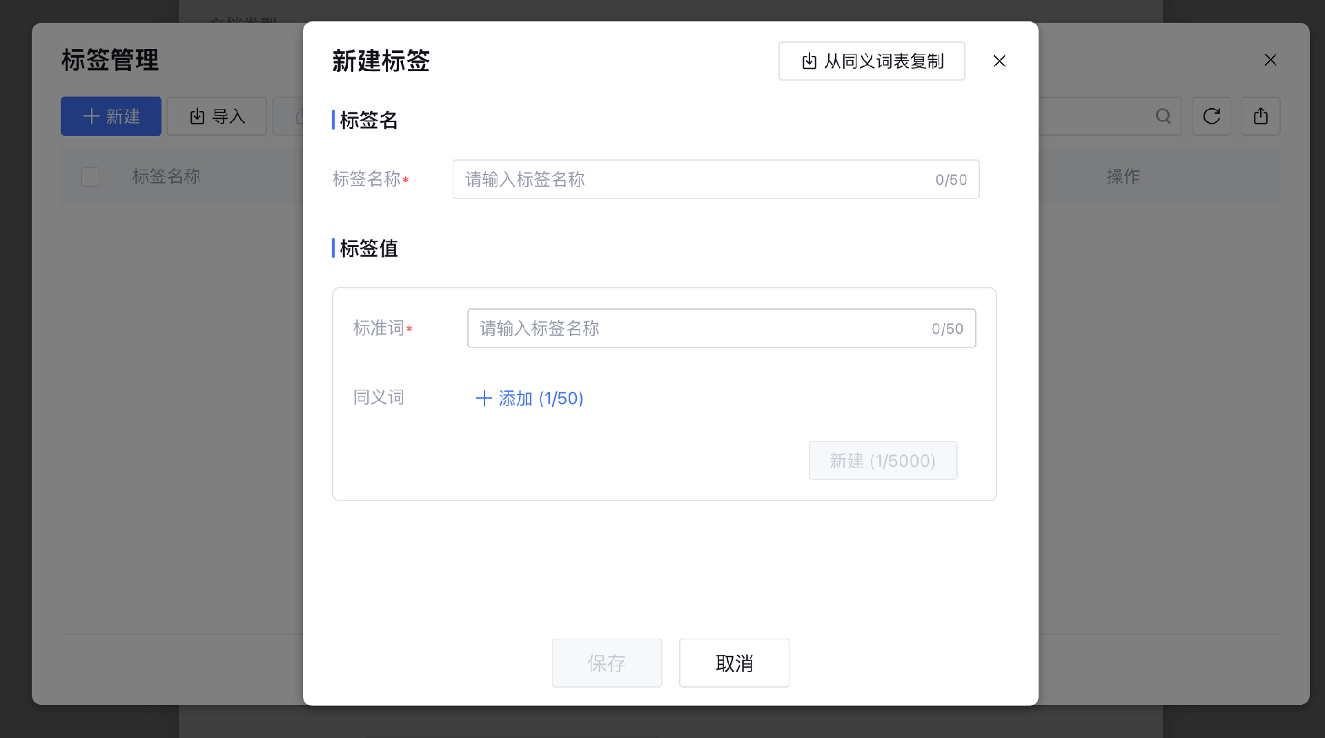 标签管理是维护标签名称和标签值的功能,标签名称和标签值可用于为文档/问答打标签。