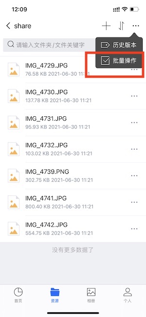 1. 进入相册页面,单击右上角的批量操作图标,弹出操作栏。