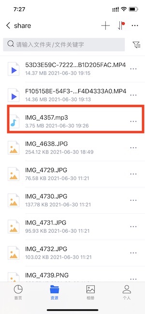1. 进入文件列表页,点击音频文件,进入预览页面。