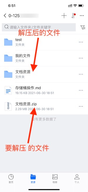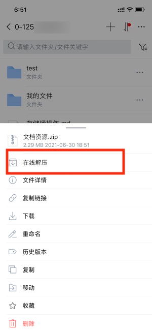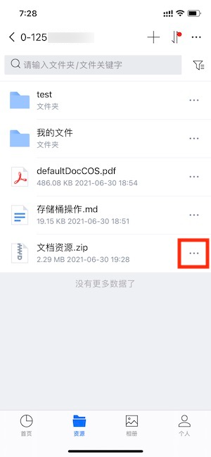 1. 进入文件列表页,点击压缩文件右侧的...。