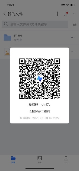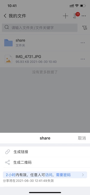 4. 点击生成链接或者二维码分享,即可生成对应的分享链接或者二维码。
