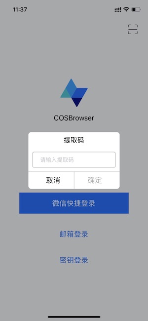 COSBrowser 支持以文件链接的方式上传文件,每次进入 App 时会检查当前剪贴板,如果剪贴板上有合法的文件链接将会弹出上传链接的提示,点击立即上传即可上传文件。