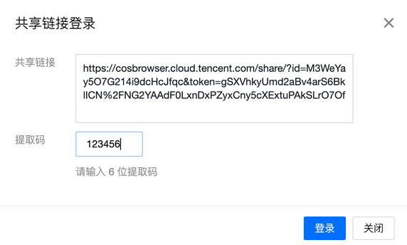 COSBrowser 提供了文件夹和文件分享的功能,方便您快速收集数据或将存储桶内数据共享给其他用户。