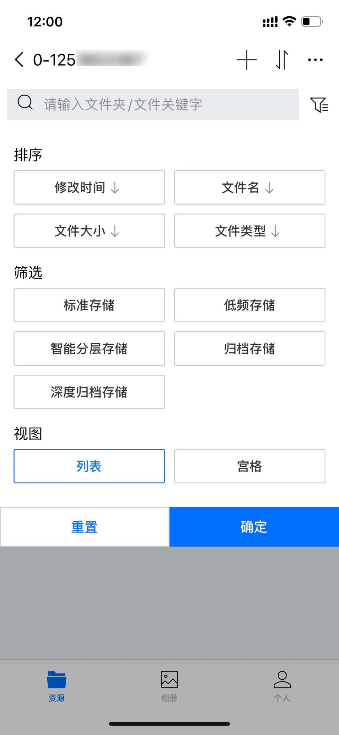 当前支持对文件列表按文件名、大小、修改时间进行排序,按存储类型进行筛选。