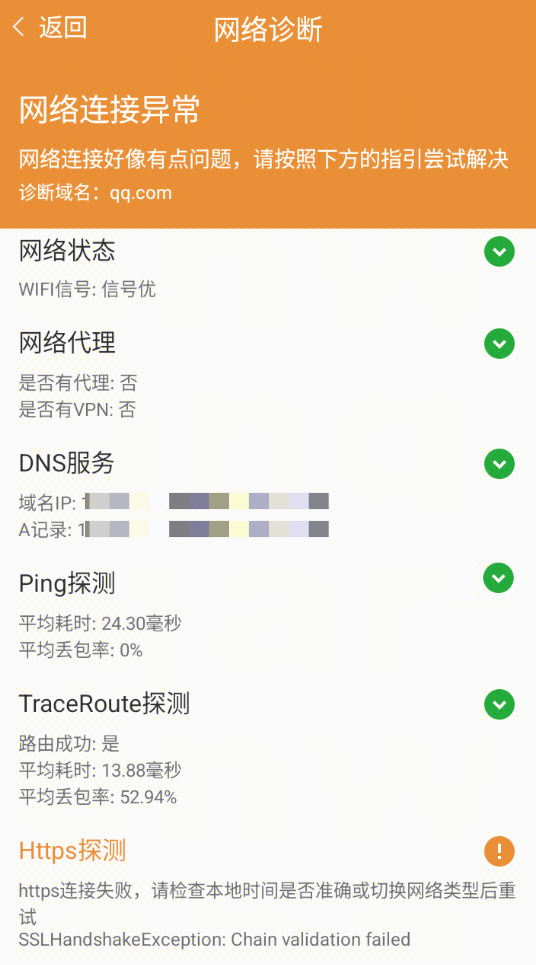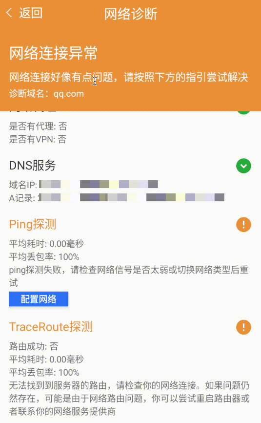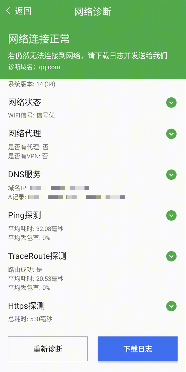网络探测可以帮助您检查本地网络开关和信号强度,检测本地代理和 VPN,以及进行网络探测(包括 DNS、Ping、Traceroute、Https),并给出探测结论以及一些解决方法。
