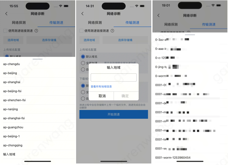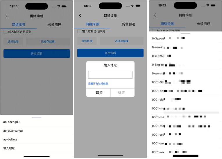 选择要测试的地域,若测试的地域不在列表中,则可选择输入地域,但是要确保该地域有已经创建的存储桶。然后选择需要诊断的存储桶,单击开始诊断。