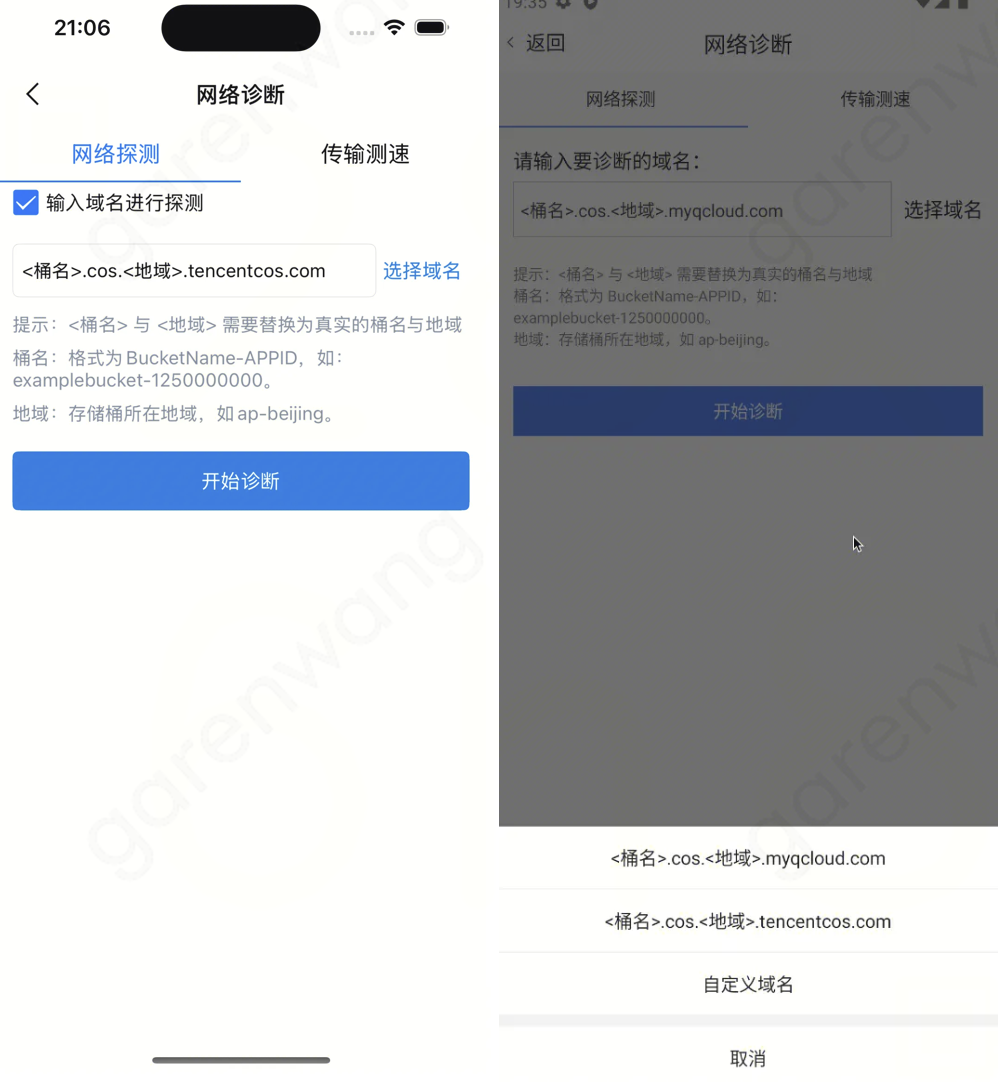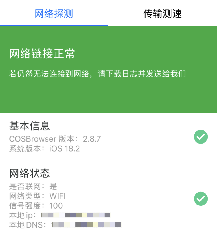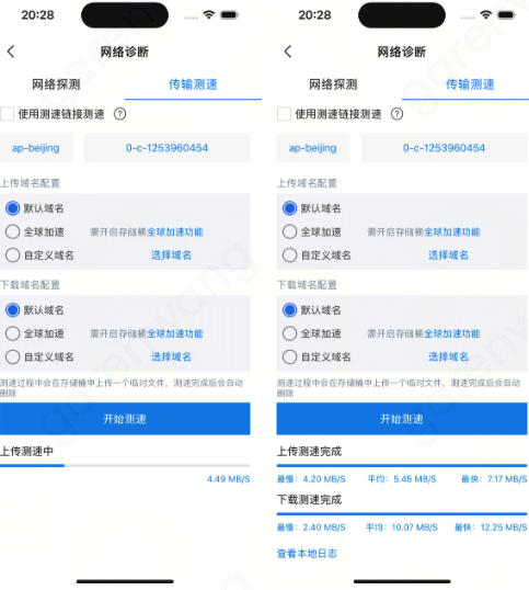 当您的 APP 在移动端使用 COS 服务时遇到错误或者上传、下载慢的问题时,可以用该工具进行网络诊断。