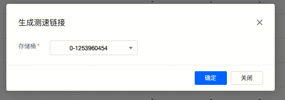 2. 选择存储桶并单击确定,生成测速链接。