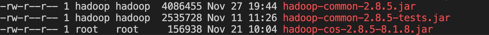 将 hadoop-cos 和 cos java sdk 放入 /usr/local/services/hadoop/share/hadoop/tools/lib/ 路径下;