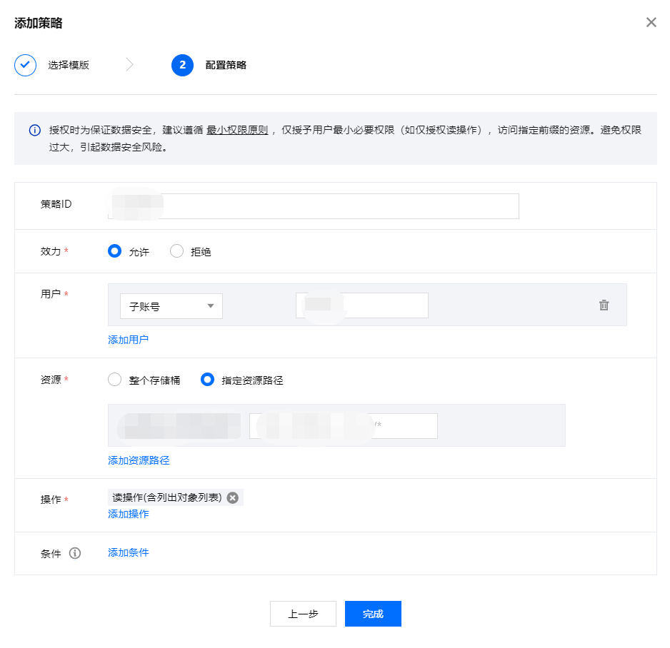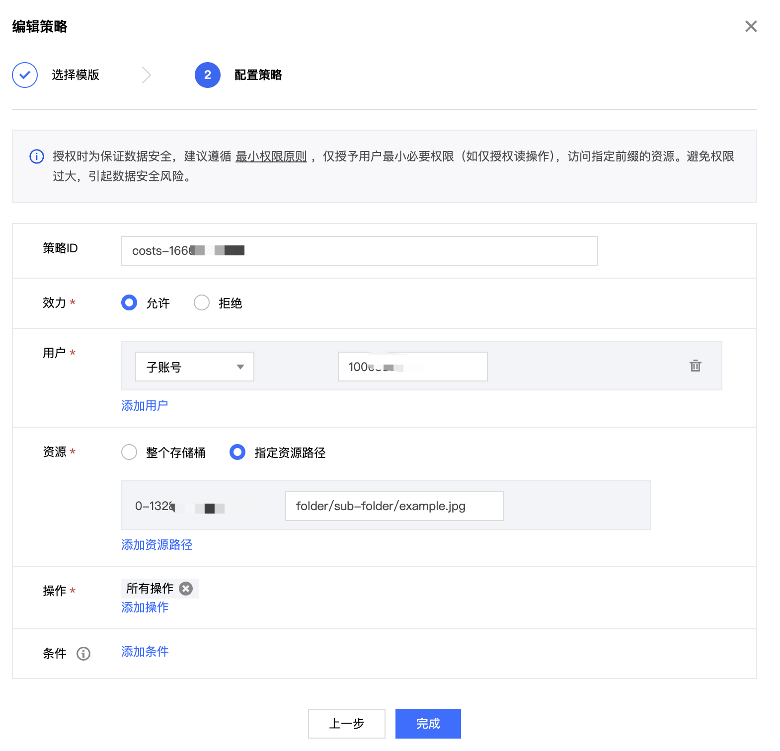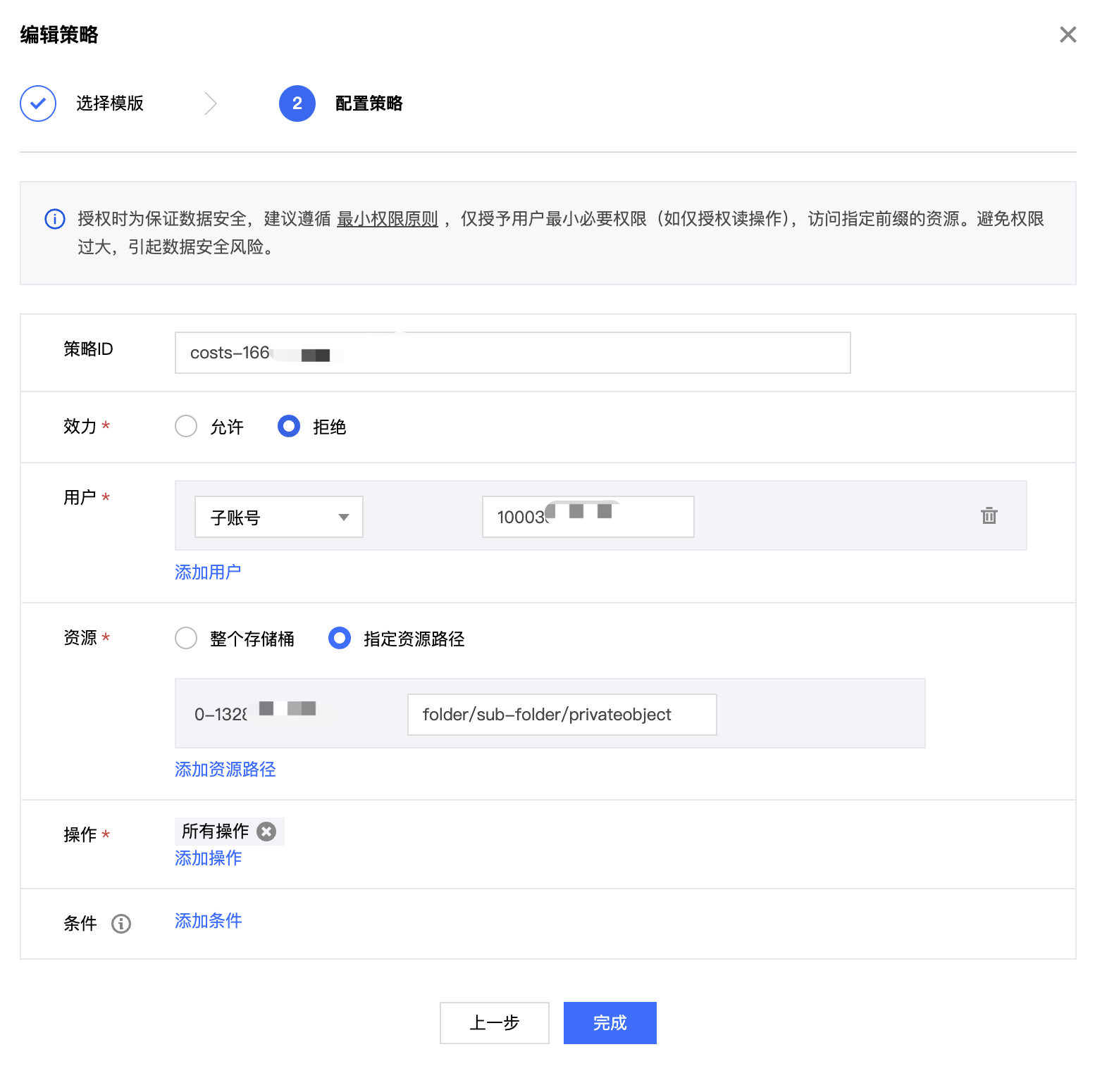 授权子账号拥有特定目录下除指定文件之外的其他所有文件的读写权限