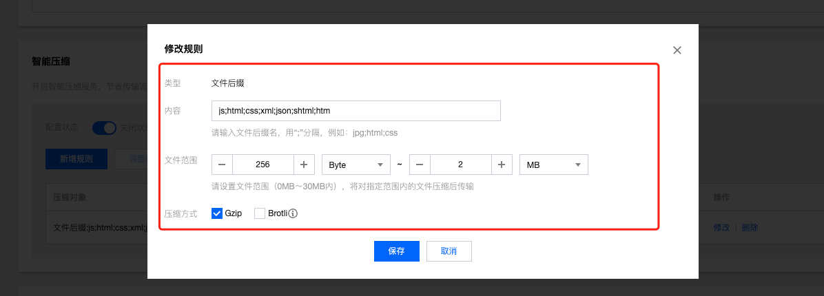 该 Gzip 压缩规则详情如下: